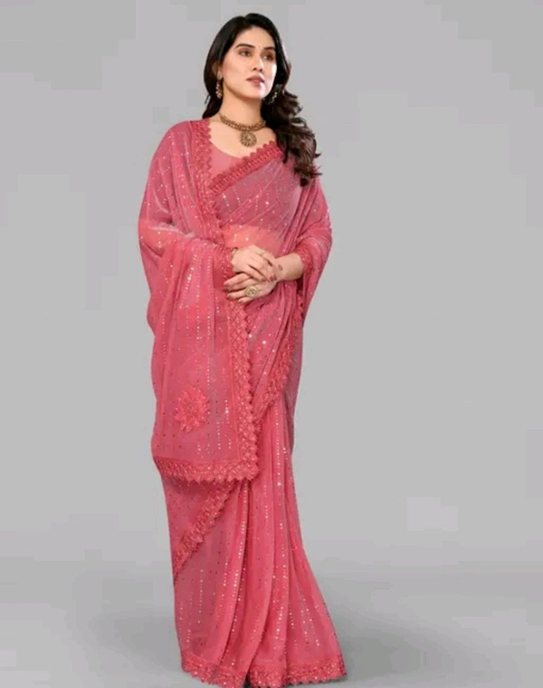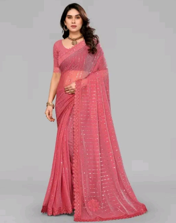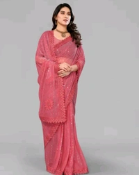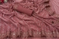 SHIMMER SAREE WITH MIRROR WORK AND CHEMICAL LACE AND DIMOND HAND WORK