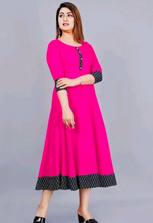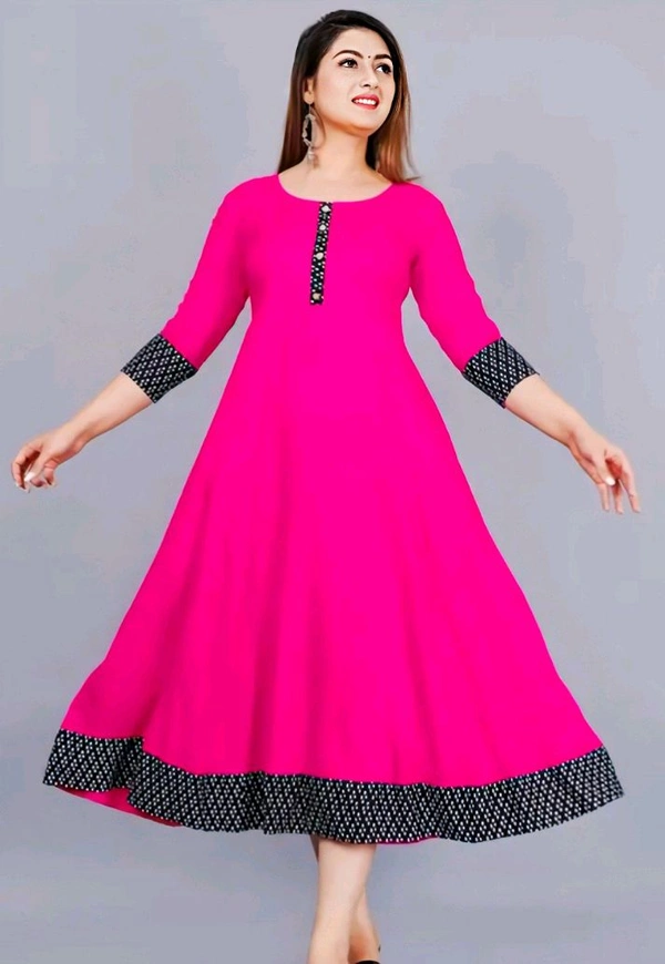 Ultra Women's Solid Printed Round Pleated Flared Kurti (Pink)